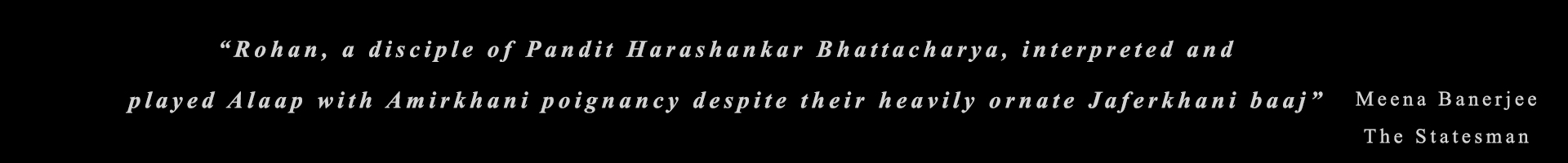 Belonging to a rare style of Sitar playing ‘Jafferkhani Baaj’, of Indore Gharana, Rohan has learnt under the tutelage of Pandit Harashankar Bhattacharya and also from his