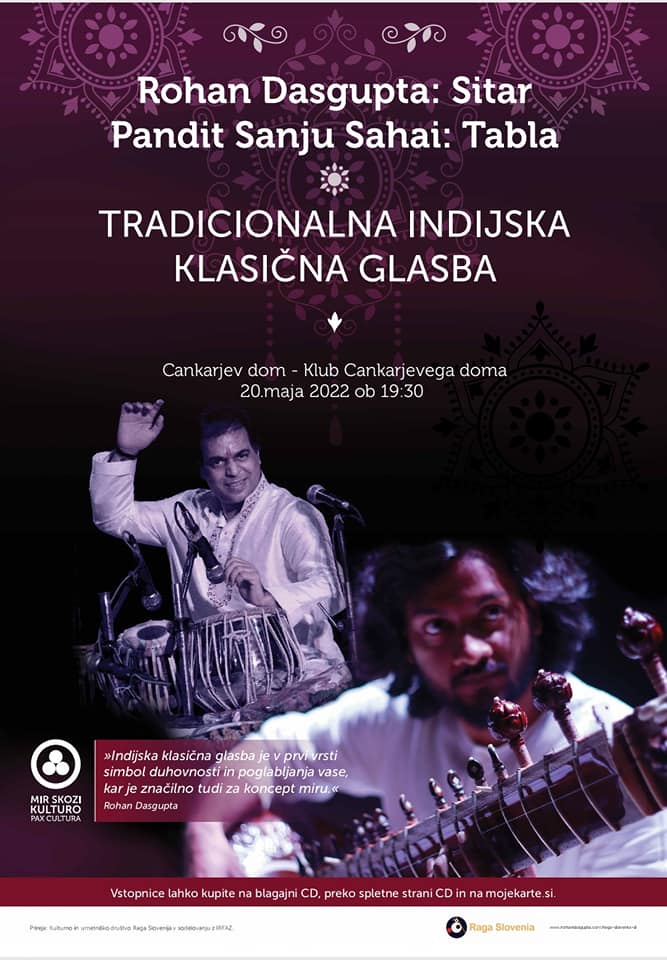 As a resident artist and self-employed in cultural as an instrumentalist, Rohan Dasgupta has been contributing to the Slovenian artistic space for several years, with the aim of creating a meaningful platform for Indian classical music in Slovenia.
